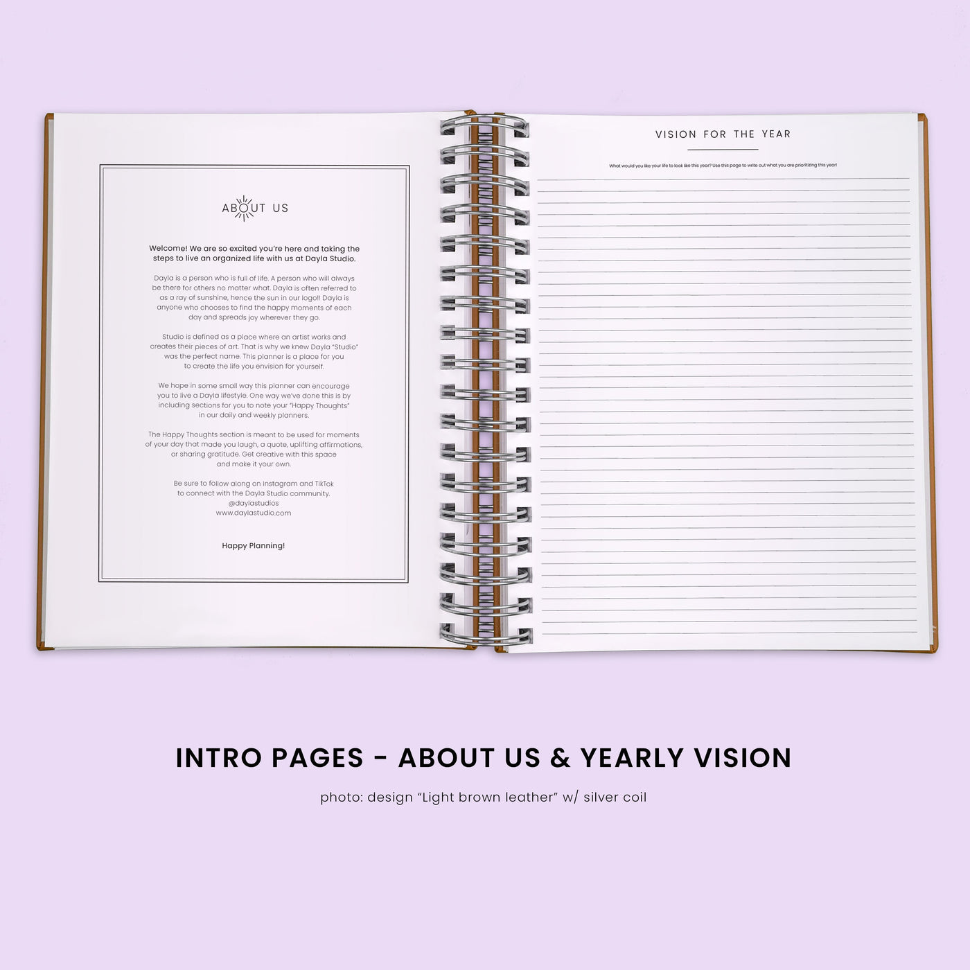• Intro planner pages includes: full year overview, yearly vision, holidays and important dates.
