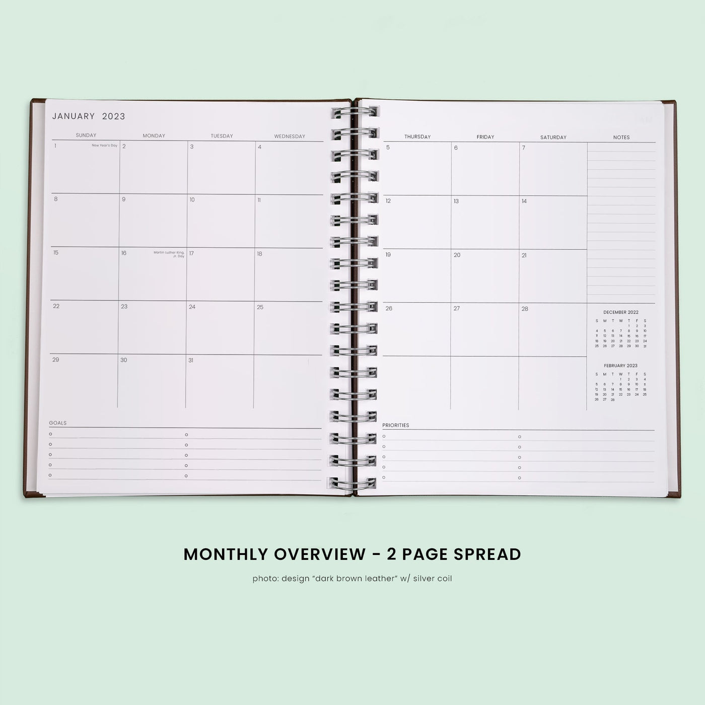 Never miss an important date or deadline with a 2 page monthly spread for each month of the year.