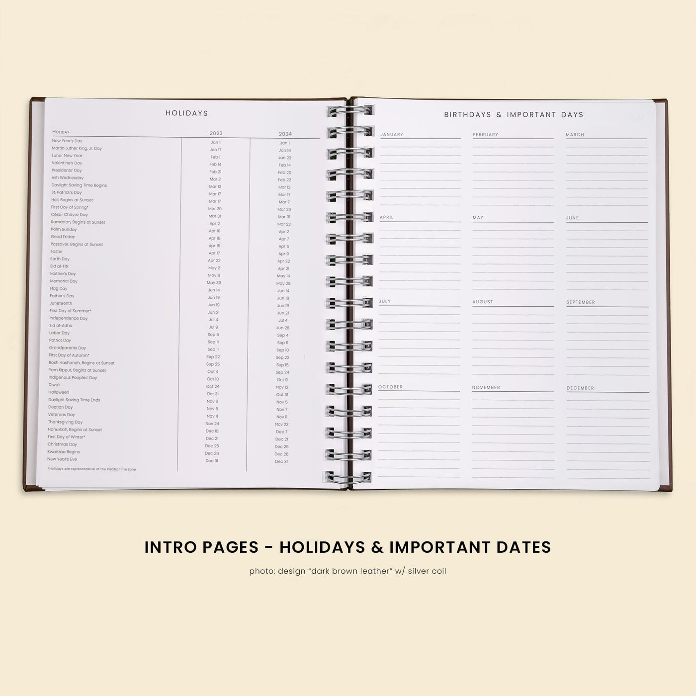 Never miss an important date or deadline with a 2 page monthly spread for each month of the year.